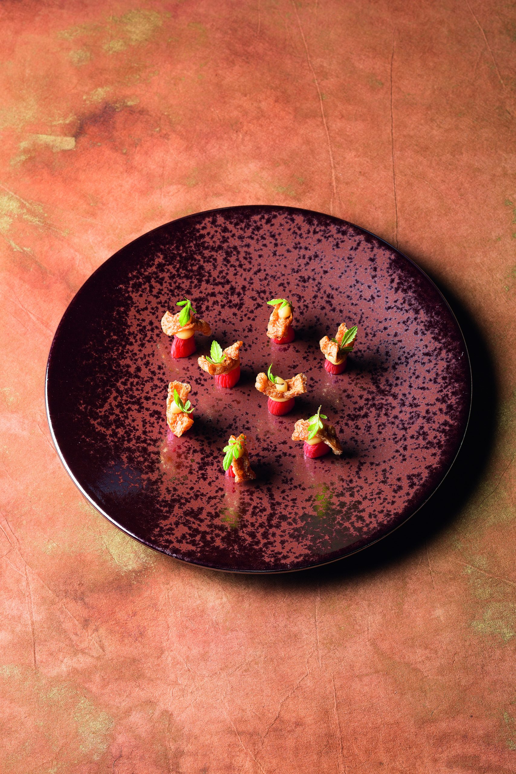 Es ist schon bemerkenswert, wenn in einer Autobiografie mit dem Titel My Way das erste Bild des Protagonisten erst auf Seite 24 zu sehen ist und gerade einmal eine Größe von 4,2 x 6,2 Zentimeter aufweist. Aber Tim Raue hat es auch nicht nötig, sich selbst in den Vordergrund zu stellen. Denn mit seiner durch zwei Sterne ausgezeichneten Küche hat er es als bester Deutscher auf Platz 34 von The World´s 50 Best Restaurants geschafft. Darauf kann er zu recht stolz sein, war sein Weg dorthin alles andere als vorgezeichnet. Und so erzählt das Buch, wie er selber sagt, seine Geschichte, seinen Weg „aus der Gosse in Kreuzberg in den kulinarischen Sternenhimmel. Es ist der Weg eines kleinen Berliner Jungen, der mit preußischem Fleiß, Willensstärke, Ehrgeiz, Disziplin und Struktur den Stromschnellen und Abgründen des Lebens trotzte und zu einem der besten Köche der Welt wurde.“ Die Auswahl der Zitate spiegelt dabei in trefflicher Weise seine Entwicklung wider. Da heißt es auf Seite 44, auf der Raue seine ersten kulinarischen Gehversuche beschreibt: „Ich hatte etwas gefunden, worin ich gut war, und ich erkannte in der Küche rasch etwas anderes: Ich konnte ein Tempo gehen und das über einen Zeitraum, den die meisten anderen nicht hinbekamen.“ Ein wenig später ist zu lesen: „Ich lernte, dass man seine Wünsche zuerst auch mit einem Lächeln vortragen konnte und dass diese Methode durchaus auch zum Ziel führte.“ Zur „Küchenbande“ im SWISSÔTEL schreibt er: „Ich schuf eine Gang, wie ich es schon als Jugendlicher von den 36 Boys gekannt hatte.“ Wer Raues Küchenphilosphie verstehen will, braucht eigentlich nur das Zitat auf Seite 60 zu lesen: „Hier zelebrierte ich meine Idealvorstellung aus thailändischer Aromatik, japanischer Produktperfektion und kantonesisch-chinesischerm Yummy-Essen.“ Dass er dabei „den Teil der Gäste aus den Augen verlor, der mich groß gemacht und der mir immer die Stange gehaltten hatte: Die Berliner“, erkannte er im MA TIM RAUE nicht, wusste diesen Fehler aber im RESTAURANT TIM RAUE zu vermeiden, denn dort, so schreibt er, „zelebriere ich, was ich am besten kann: Ich übersetze bestehende Gerichte in die Hochküche. Exemplarisch dafür steht der Wasabi-Kaisergranat, mein Signature-Gericht.“ Dieses Rezept ist denn auch eins von 70 seiner besten Rezepte, die er in dem Buch neben 40 Grundrezepten präsentiert und zu denen eine Japanische Tuna Pizza ebenso gehört wie Kaviar & Berliner Senfei. Dieses sehr persönliche Kochbuch gibt den Weg frei für einen Blick in Tim Raues Welt, die er als „egozentrisches Universum, völlig subjektiv und unangepasst“ bezeichnet, die aber auch wohl eines der genialsten kulniarischen Versuchslabors unserer Zeit darstellt.